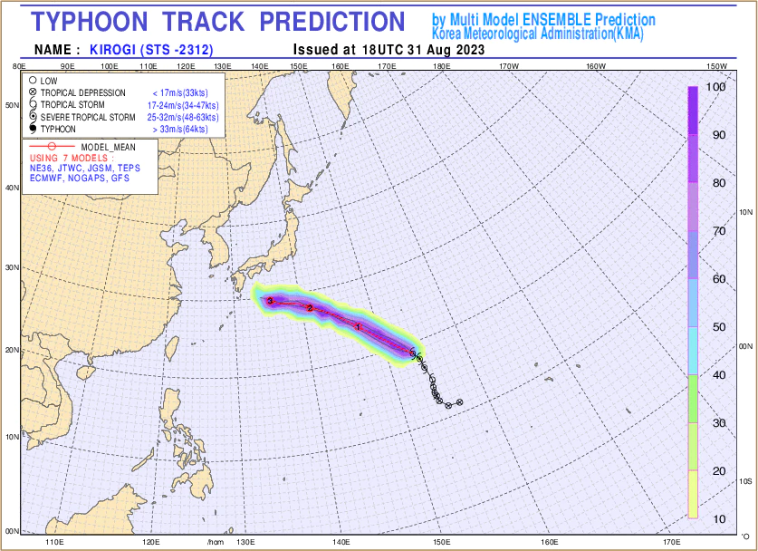 12호 태풍 기러기 일본에서 소멸할 수 있다고?(2023.09.01 최신 경로)