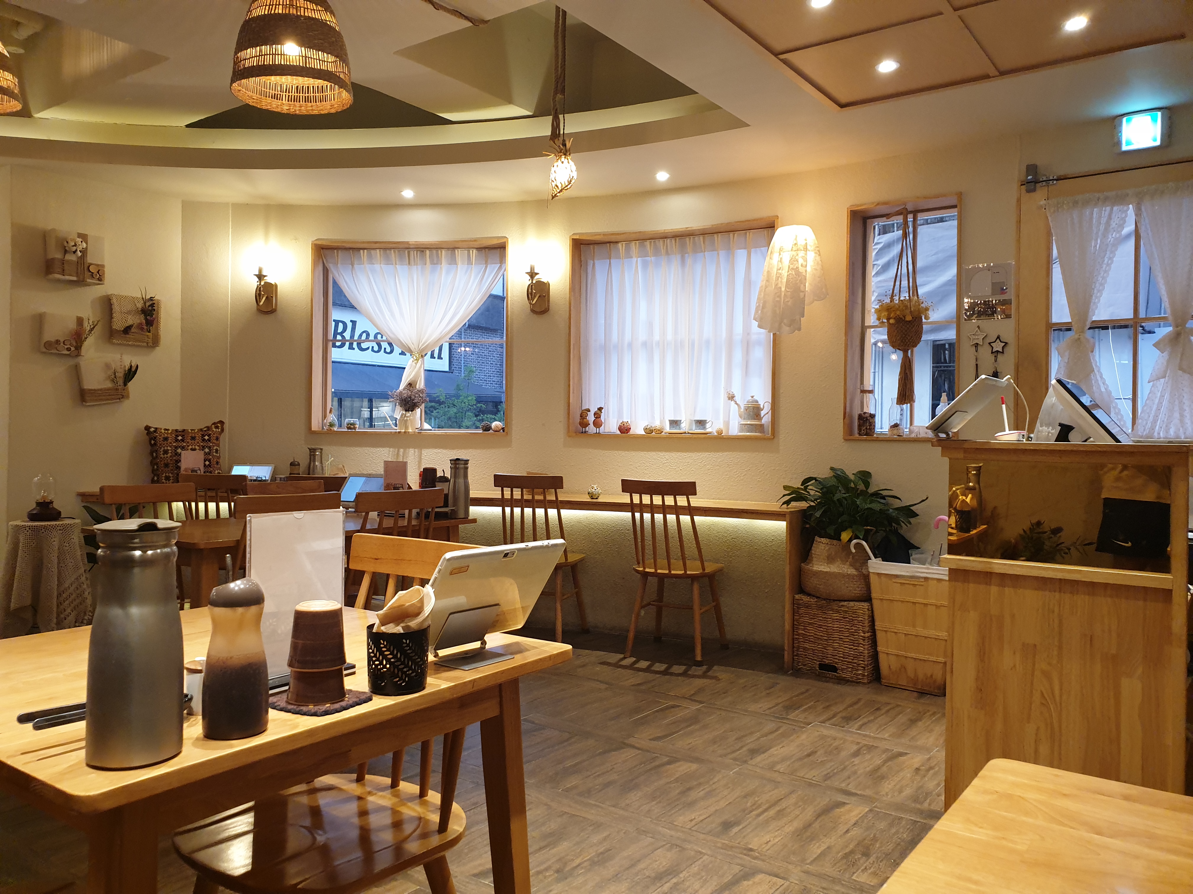2인 좌석과 4인 좌석이 모두 있고 테이블 간의 거리가 적당해서 식사하기에 불편하지 않았습니다.