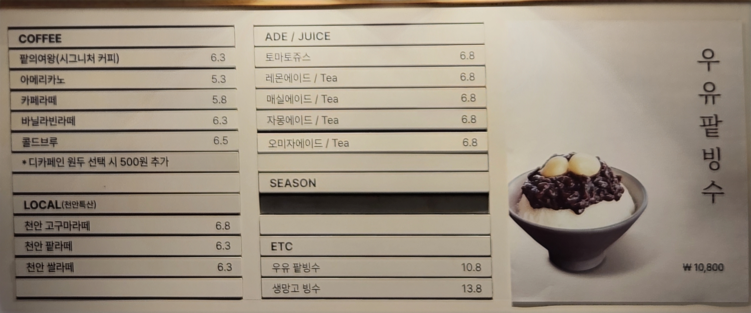 궁금하실 분이 있으실 것 같아 메뉴판 이미지도 첨부하였습니다.(2023.06.25일 기준)