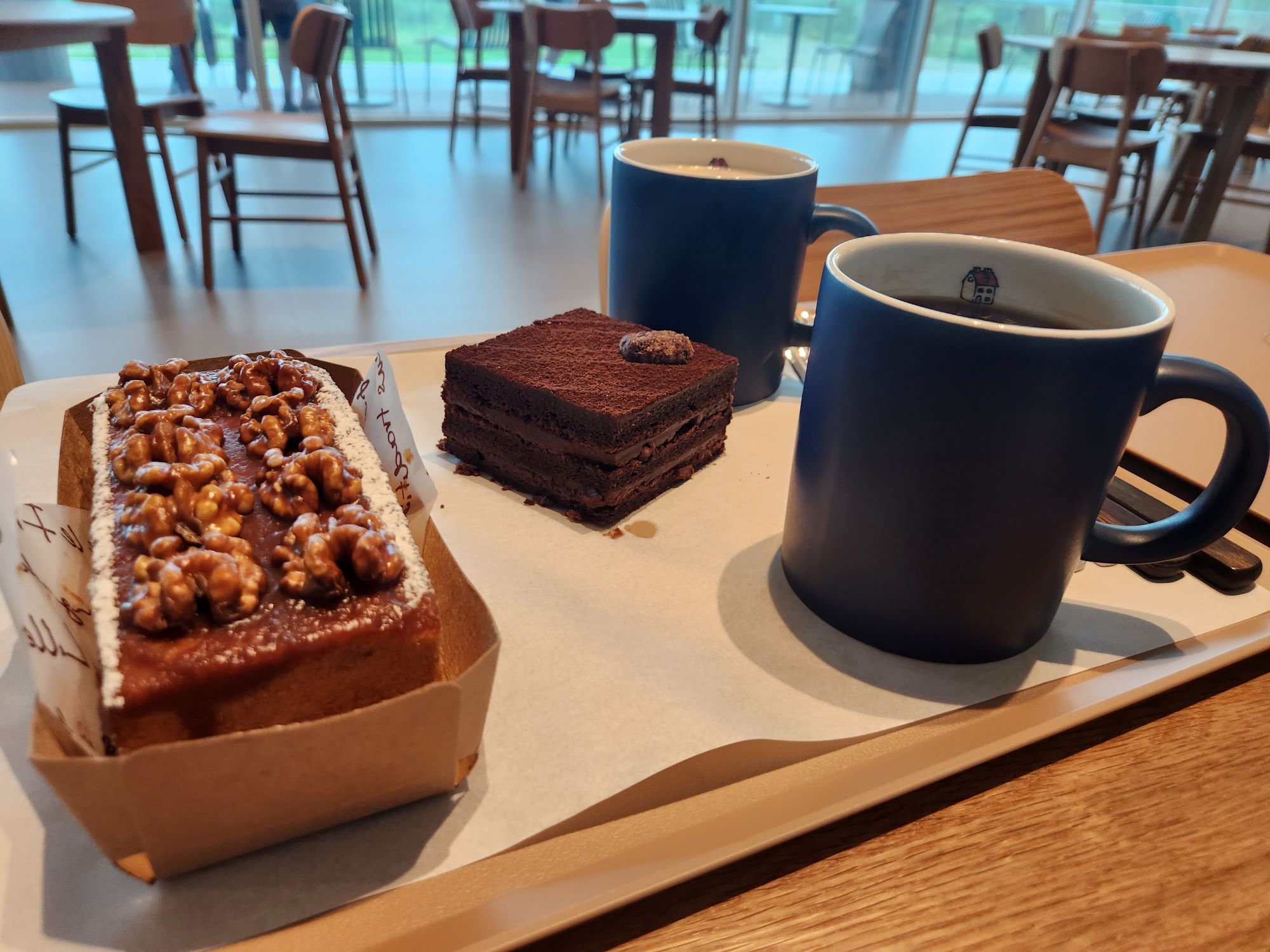 저는 사진의 호두범벅과 가나슈 케이크를 주문했는데, 맛있었습니다.