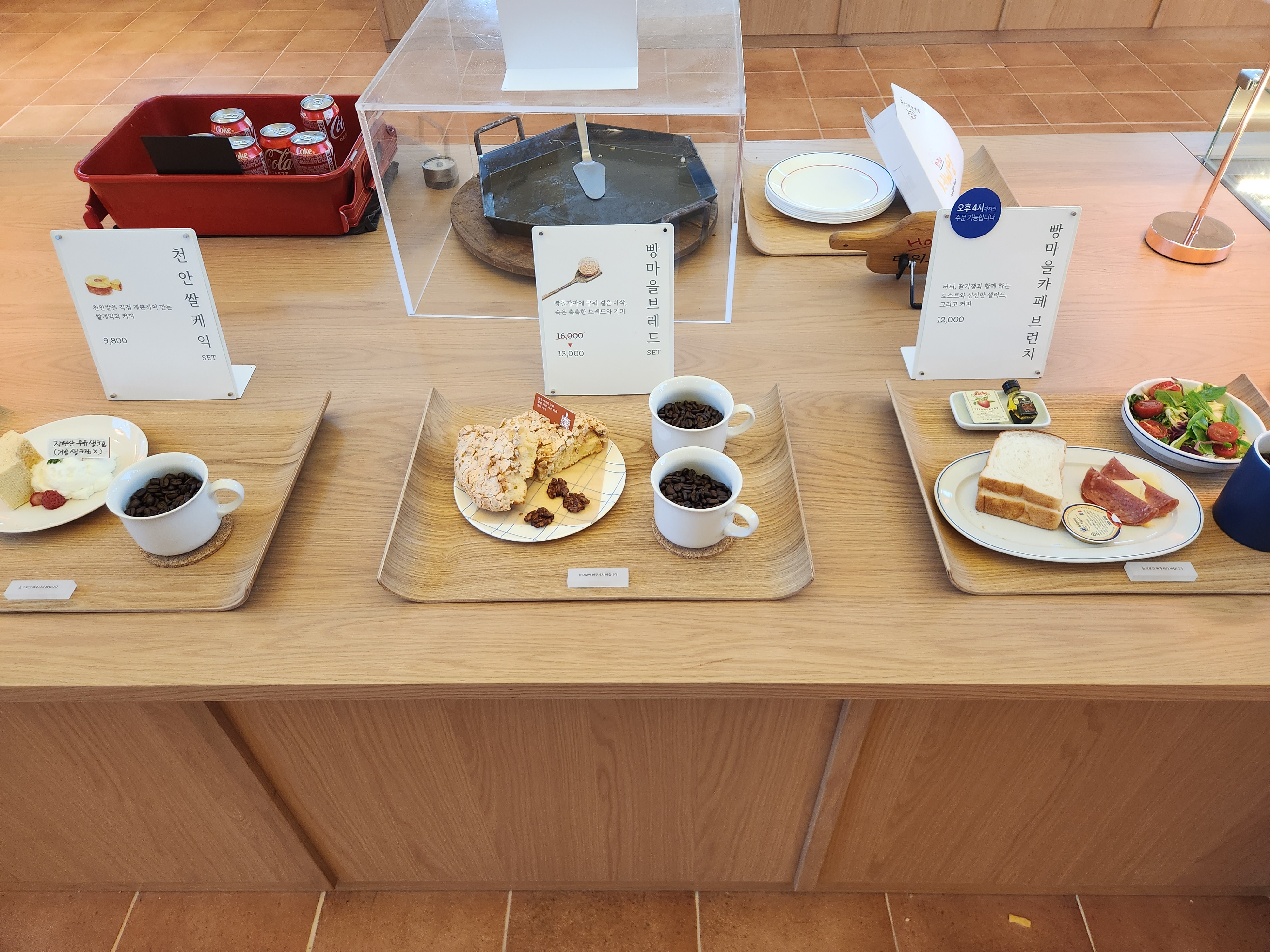 저는 천안 쌀라떼, 아메리카노, 호두범벅, 가나슈 케이크를 주문했습니다.