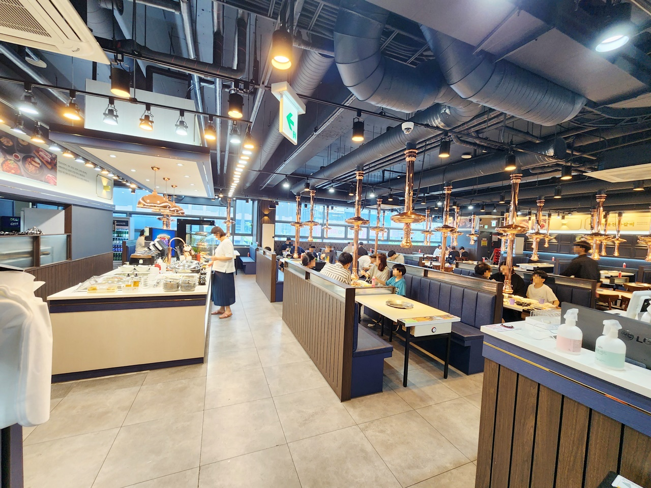 왼쪽은 셀프바가 있고 오른쪽은 좌석이 있습니다.